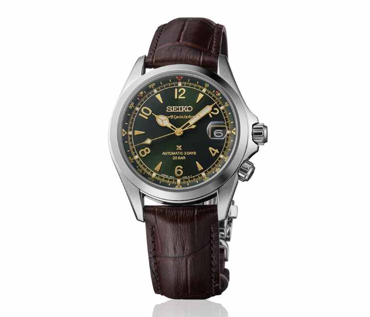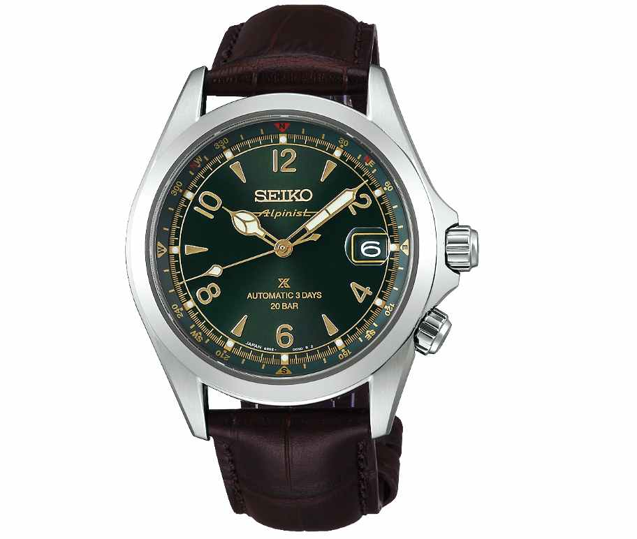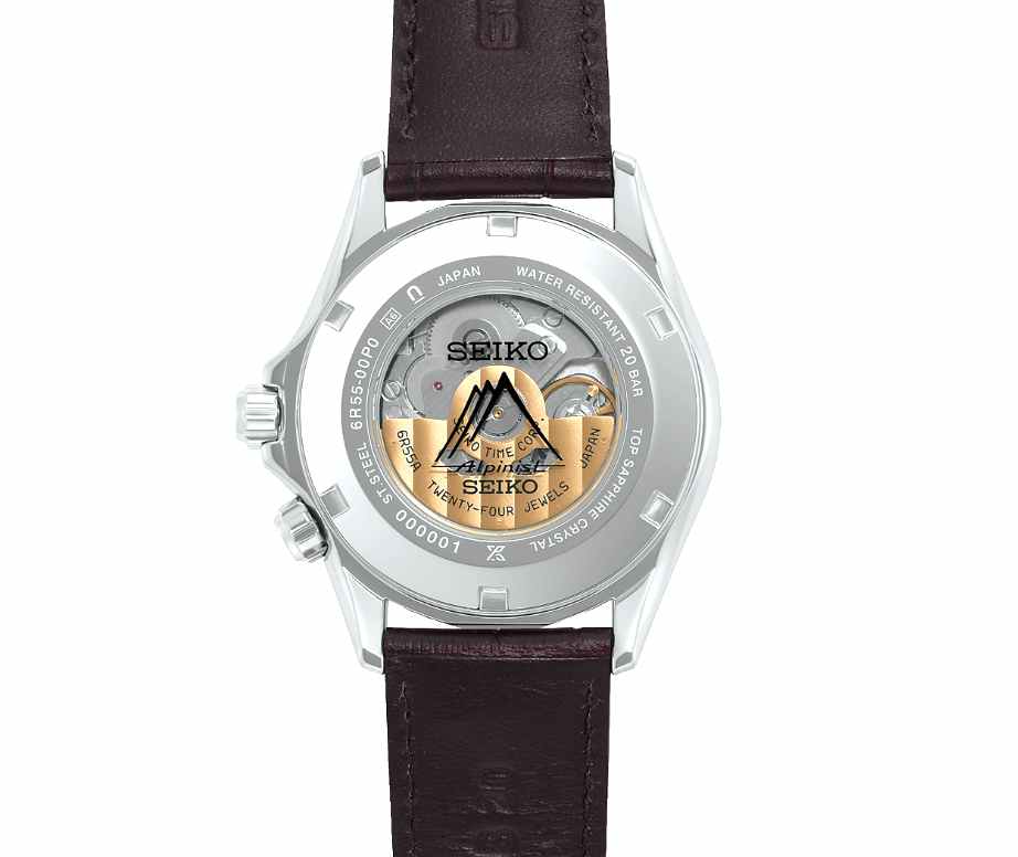 こちらは【セイコープロスペックス アルピニスト】仕様変更された新型となります。変更点は『キャリバーの変更』。今までが6R35が搭載されていましたが今回が6R55となりパワーリザーブの持続時間が70時間から72時間に変更。また、文字盤のデザインの変更がございます。