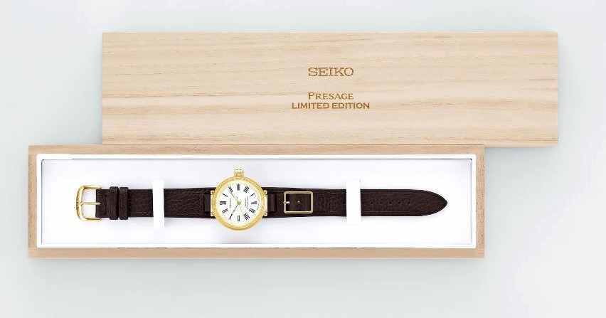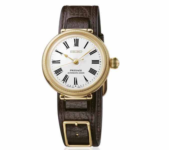 こちらは【セイコープレサージュ創業145 周年記念 クラフツマンシップ 琺瑯ダイヤル 限定モデル】こちらの腕時計は成功や豊かさなどを象徴する温かみのあるゴールドをアクセントカラーとして採用。腕時計を通し、人々の「時」に寄り添い続けてきたセイコーが、日々の生活を彩り、未来を照らす存在であることを願い、本作を商品化いたしました。懐中時計のような雰囲気のある独特の形状とプロポーションを備えたゴールドカラーのケースは、タイムキーパーにも採用されていた琺瑯ダイヤルの、艶やかな光沢と温かみのある質感をより一層引き立てます。