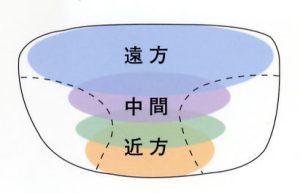 中間部については、パソコン画面を見る際など(中間距離)には顔を上げて中間部で見ていただき、